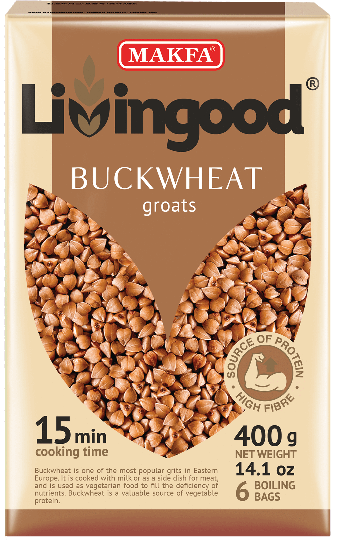 MAKFA buckwheat is stored for 20 months in a dry place at a temperature of no more than 25 °C and a relative humidity of no more than 75%.
